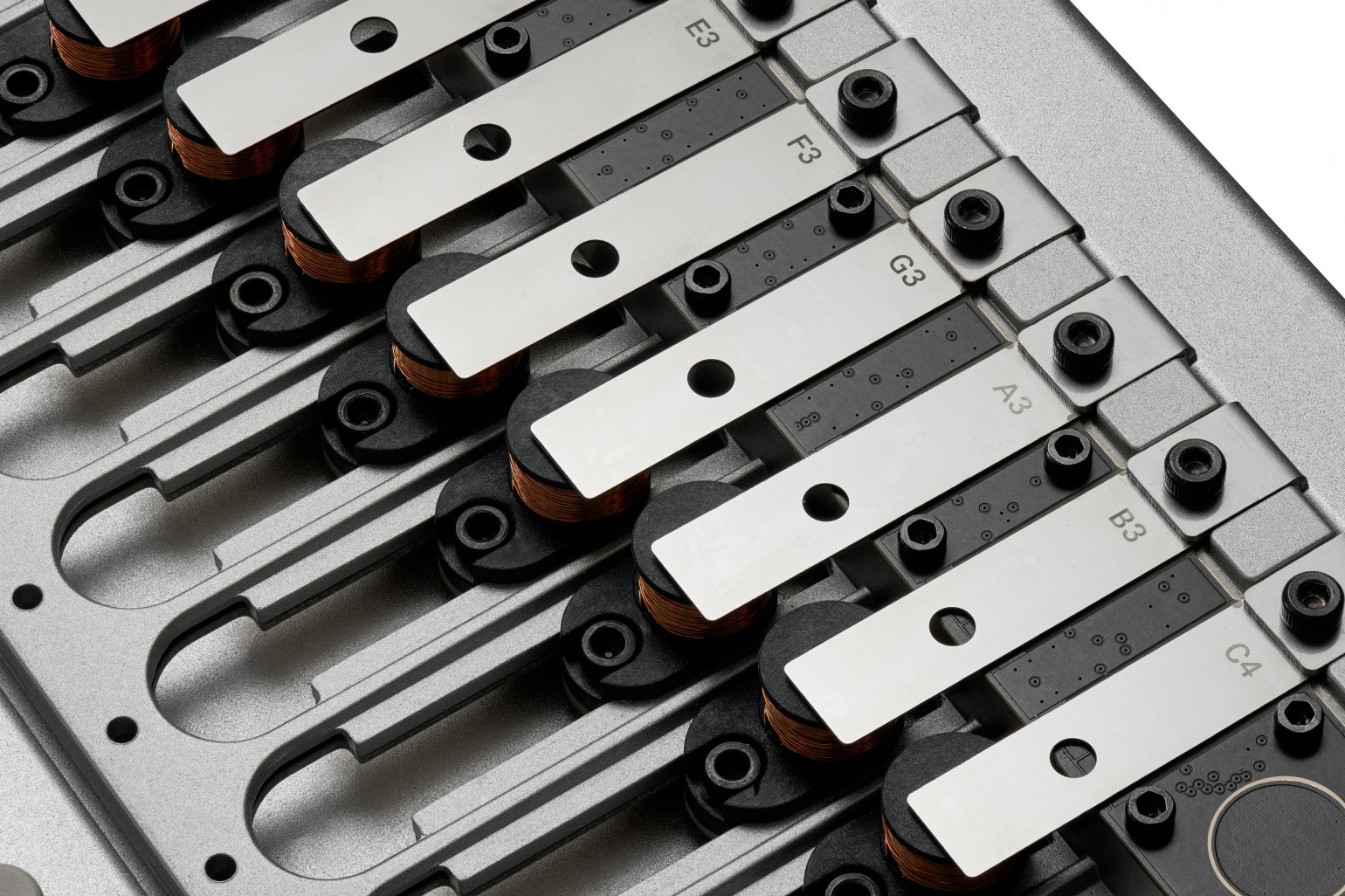 Ocho voces electromecánicas independientes con resonadores de acero constituyen el núcleo del sonido acústico del instrumento.