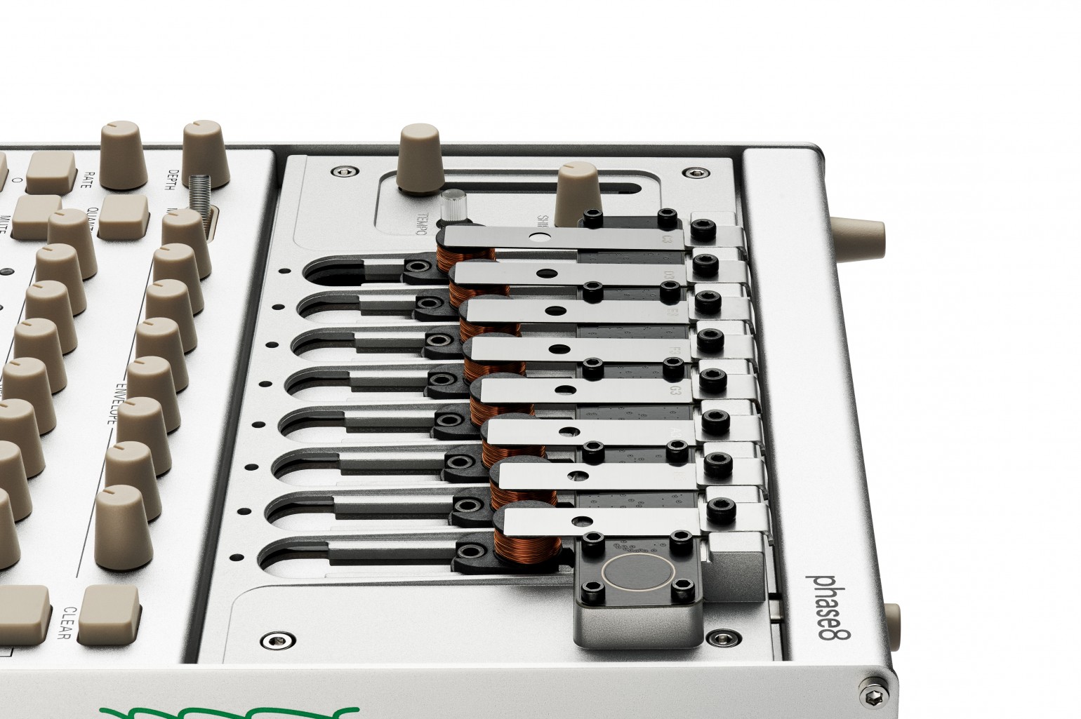 El diseño te permite intercambiar y realizar la afinación fácilmente de los resonadores, lo que te permite personalizar la escala y el carácter de tu phase8.