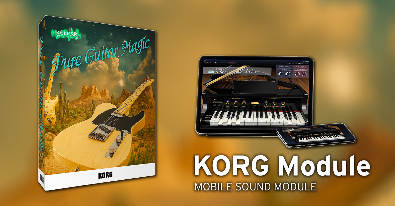 Kelfar Pure Guitar Magic delivers the ultimate electric guitar experience for KORG Module and Module Pro, and is also available for KORG KRONOS and NAUTILUS as EXs 256Kelfar Pure Guitar Magic. This exclusive collection of electric guitars is drawn from Karim El-Far’s personal selection of instruments at Kelfar Technologies and meticulously sampled in Kelfar Technologies’ private studio using top-tier audio interfaces and premium recording equipment—ensuring exceptional fidelity, realism, and playability.