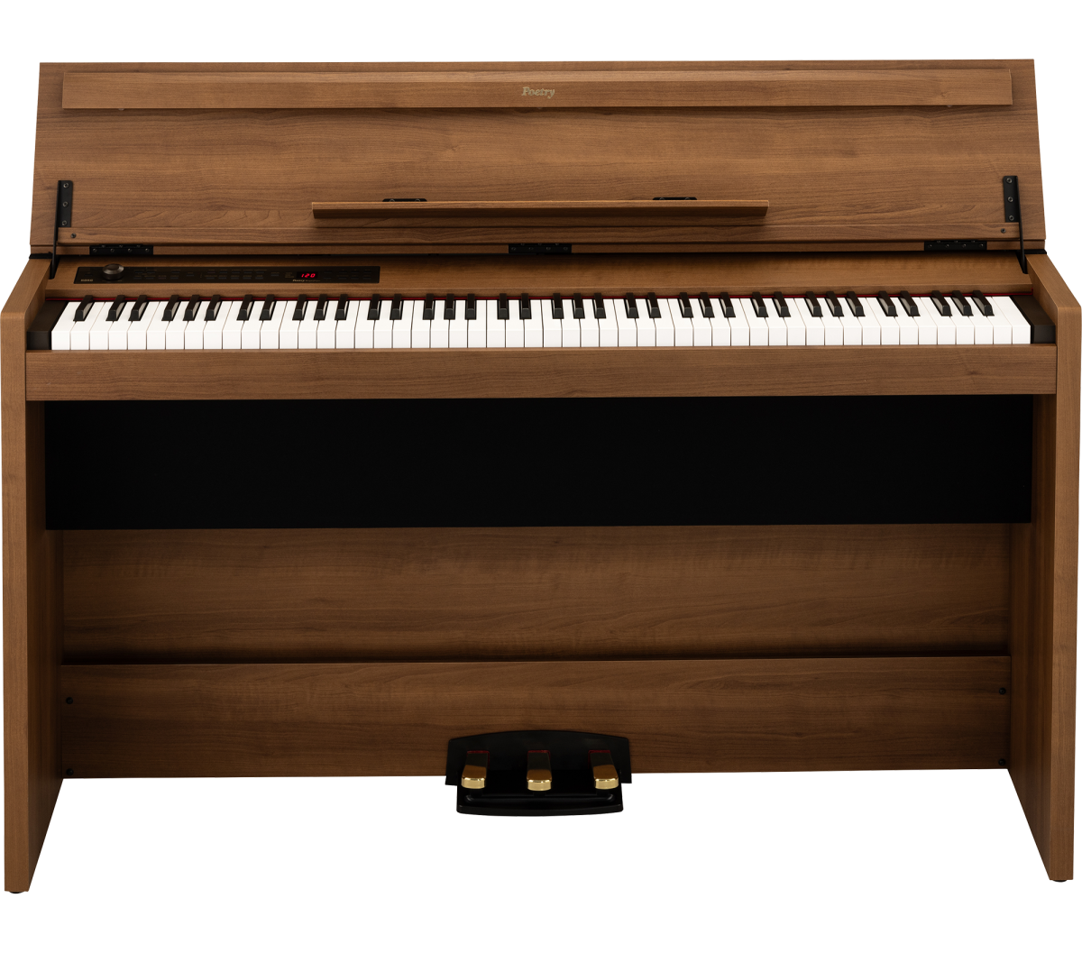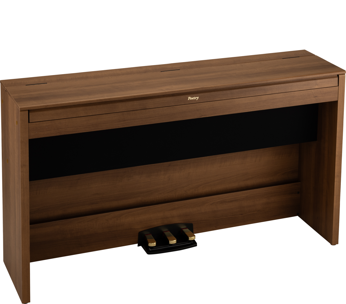Poetry Magnifique incluye un sistema completo de tres pedales —damper, soft y sostenuto— como en un piano tradicional. Tanto el pedal damper como el soft admiten el uso de medio pedal, permitiendo un mayor nivel de matiz y control en la interpretación. Además, la posición de los pedales ha sido cuidadosamente ajustada para ofrecer una experiencia de ejecución más natural y cómoda.