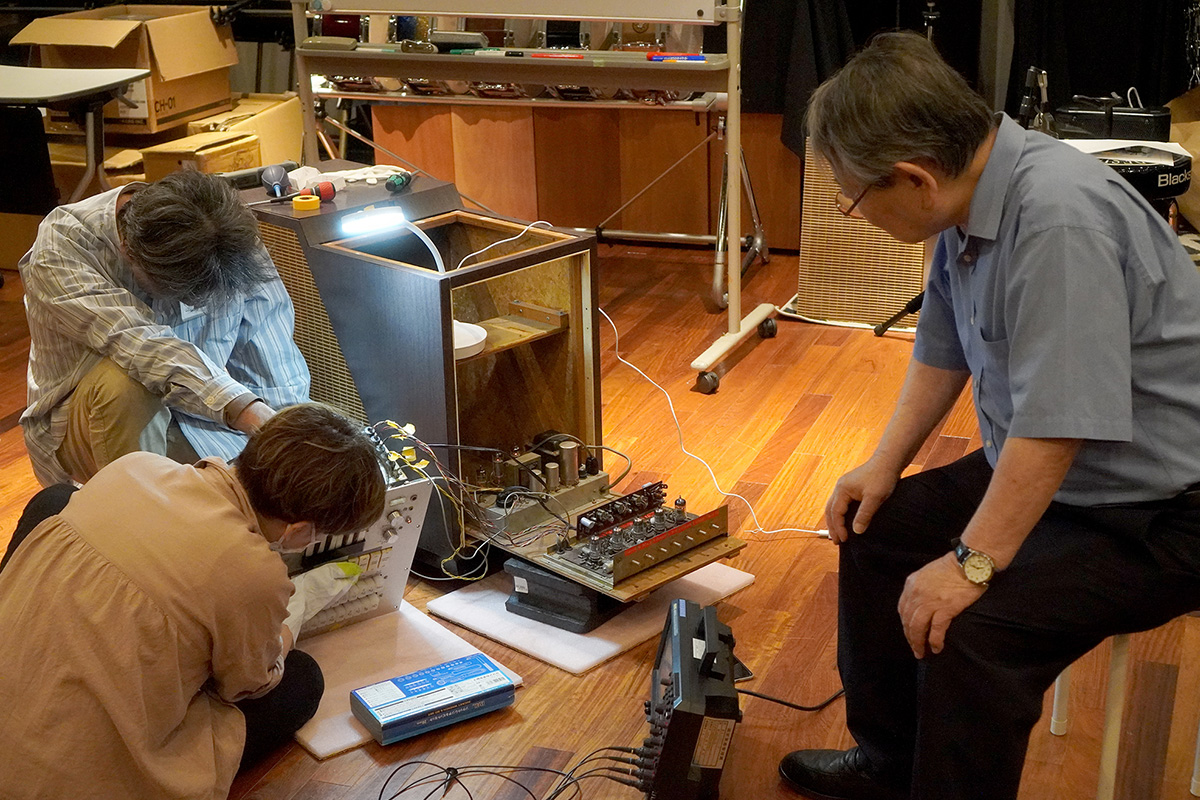 未来技術遺産にも登録されているDA-20は、浜松市楽器博物館に展示されていましたが、すでに電源すら入らない状態でした。また、現存する個体としても、この一台しか無く、希少な存在であるDA-20が、音も出ない状態で静かに置かれたままで良いものかと、弊社監査役の三枝文夫を中心に修復プロジェクトがスタートしました。回路図はもちろん、当時の資料も一切なく、すべてが手探りな状態で、一つ一つ丁寧に修復していった結果、当時の輝きを取り戻したのです。