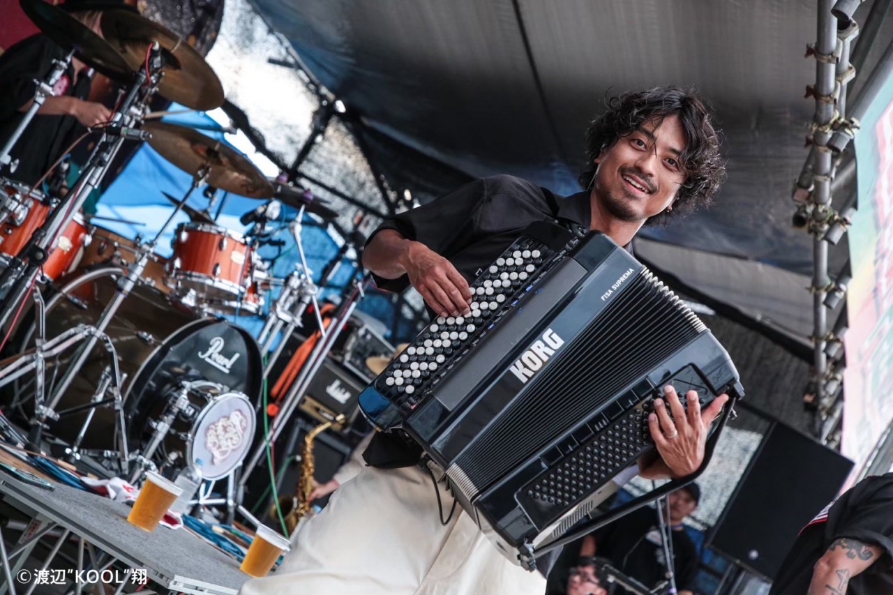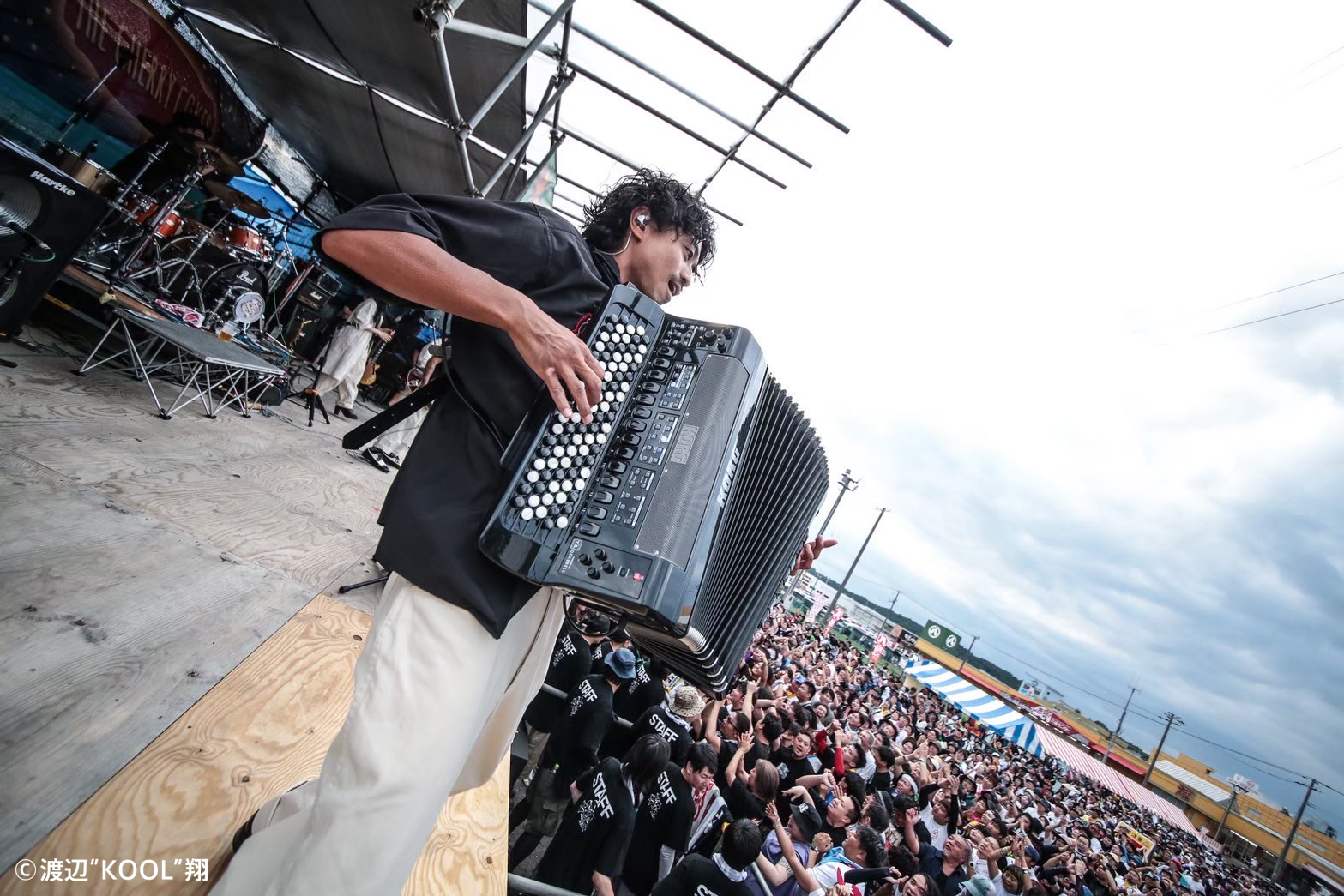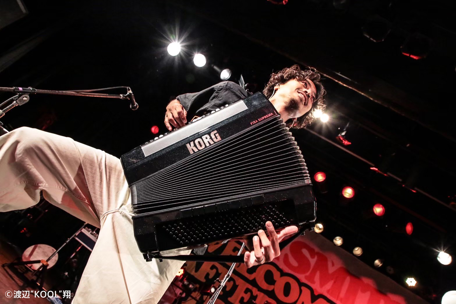 THE CHERRY COKE$」。その轟音のステージでアコーディオンを演奏する 丸茂睦(まるも むつみ)氏に、電子アコーディオン FISA SUPREMA(フィサ スプレーマ) について語っていただきました。