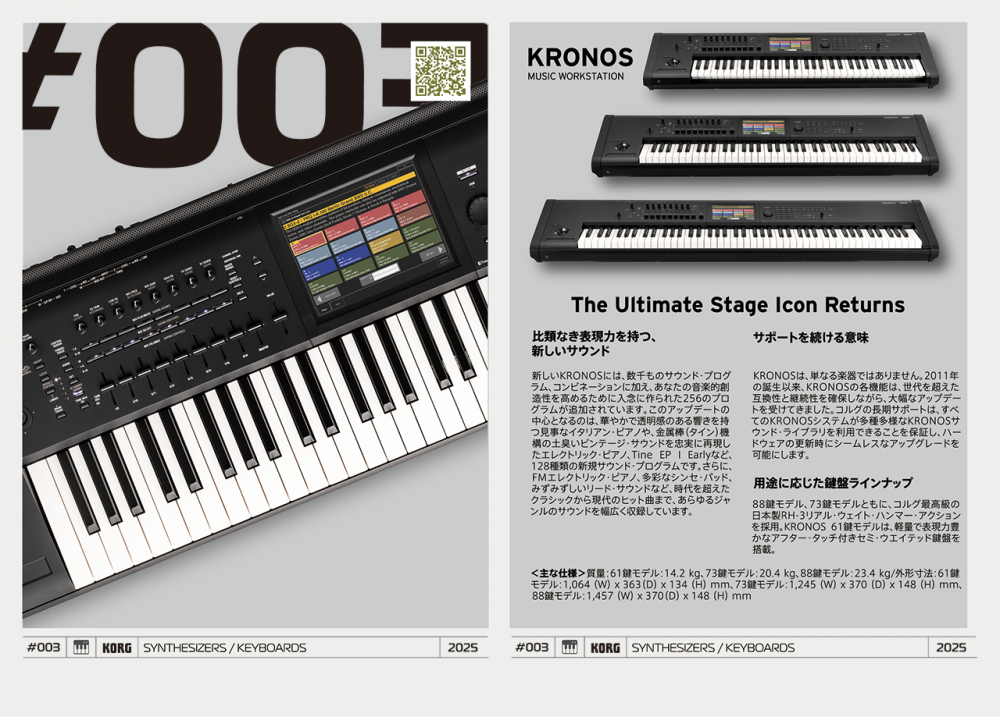 中央のコルグ枠には、 KRONOS-88 Grandstage X Pa5X-88と3台の88鍵盤モデルを展示。コロナ禍以降、お店に向かう足が少々重くなっている今日この頃ですが、そんな中でも楽器博に来て頂いたみなさまにハイエンド・モデルに触れて頂くことで、静かに眠っていた楽器への情熱を呼び覚ますことができたら、という思いを込めました。