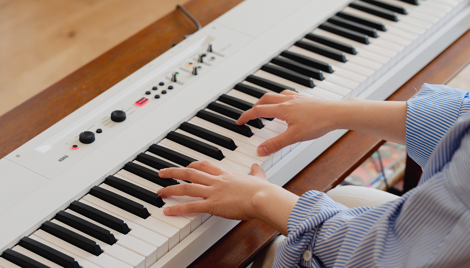 初心者としては、すごく弾きやすかったです。譜面が読めないので、普段からギターでも使っているコード表を見ながら弾いているんですけど、ピアノでコードを押さえてみると、「あ、コードってこういう構成なんだ」って分かるようになってきて。ギターとは違う視点で音楽を理解できるようになったのは、すごく面白い変化でした。