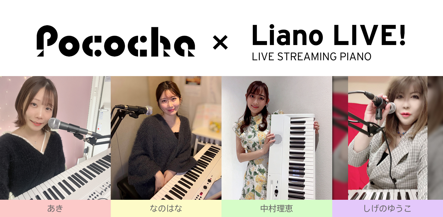 「Pococha(ポコチャ)」 は、株式会社ディー・エヌ・エーが運営する、スマホひとつで誰でも気軽にライブ配信と視聴が楽しめるライブコミュニケーションアプリです。ピアノや弾き語りなど、アーティストとして活動する方々も多く活躍するPocochaと、コルグの新製品である配信用電子ピアノ「Liano LIVE!」がコラボし、「Liano LIVE!アンバサダー」を決めるイベントを開催しました。今回は、そのイベントを勝ち抜き、アンバサダーに就任した4名のライバーに、Liano LIVE!の第一印象や使い勝手、そしてライブ配信の中で感じた変化について、率直に語っていただきました。