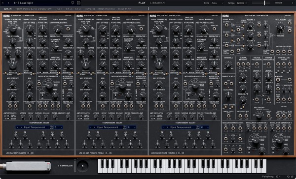 KORG Collection - TRINITYは、オリジナルのサウンドを徹底的に再現するために、最終的な TRINITY サウンドの味付けとなるD/Aコンバーターのエミュレーションを行なっています。これにより、当時の TRINITY 特有の透明感と力強さを兼ね備えたサウンドを忠実に実現しました。さらに、最大同時発音数の拡張、エフェクト部分の制限をなくした8系統のIFXなど、ソフトウェアだからできた改良を組み合わせることで、オリジナルを超えた音作りの可能性を広げています。