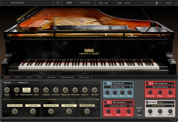 88鍵すべての鍵盤それぞれにループなしのステレオ・サンプルを使用し、音の減衰の仕方はもちろんのこと、和音演奏時の響きも本物と同様にナチュラルそのものです。また、ベロシティ・スイッチは最大12段階で、演奏するタッチの強弱で音量だけでなく音色も如実かつ自然な変化をお楽しみいただけます。