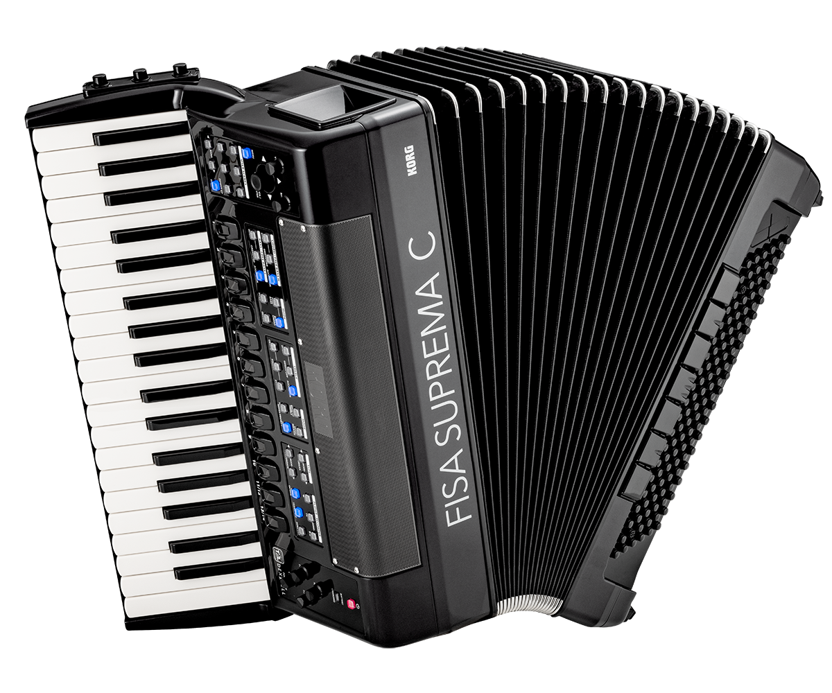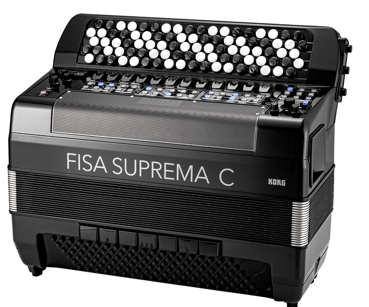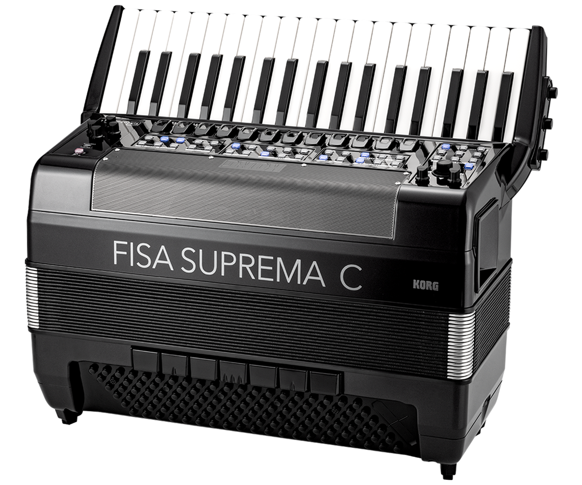 FISA SUPREMA Cでは、9kg台(鍵盤式:9.9kg、ボタン式:9.6kg)というクラス超えの軽さを実現。このサイズ感とスペックを持つアコーディオンとしては、非常に軽量であり、長時間の演奏や移動の多い現場でも、プレイヤーの負担を大幅に軽減します。