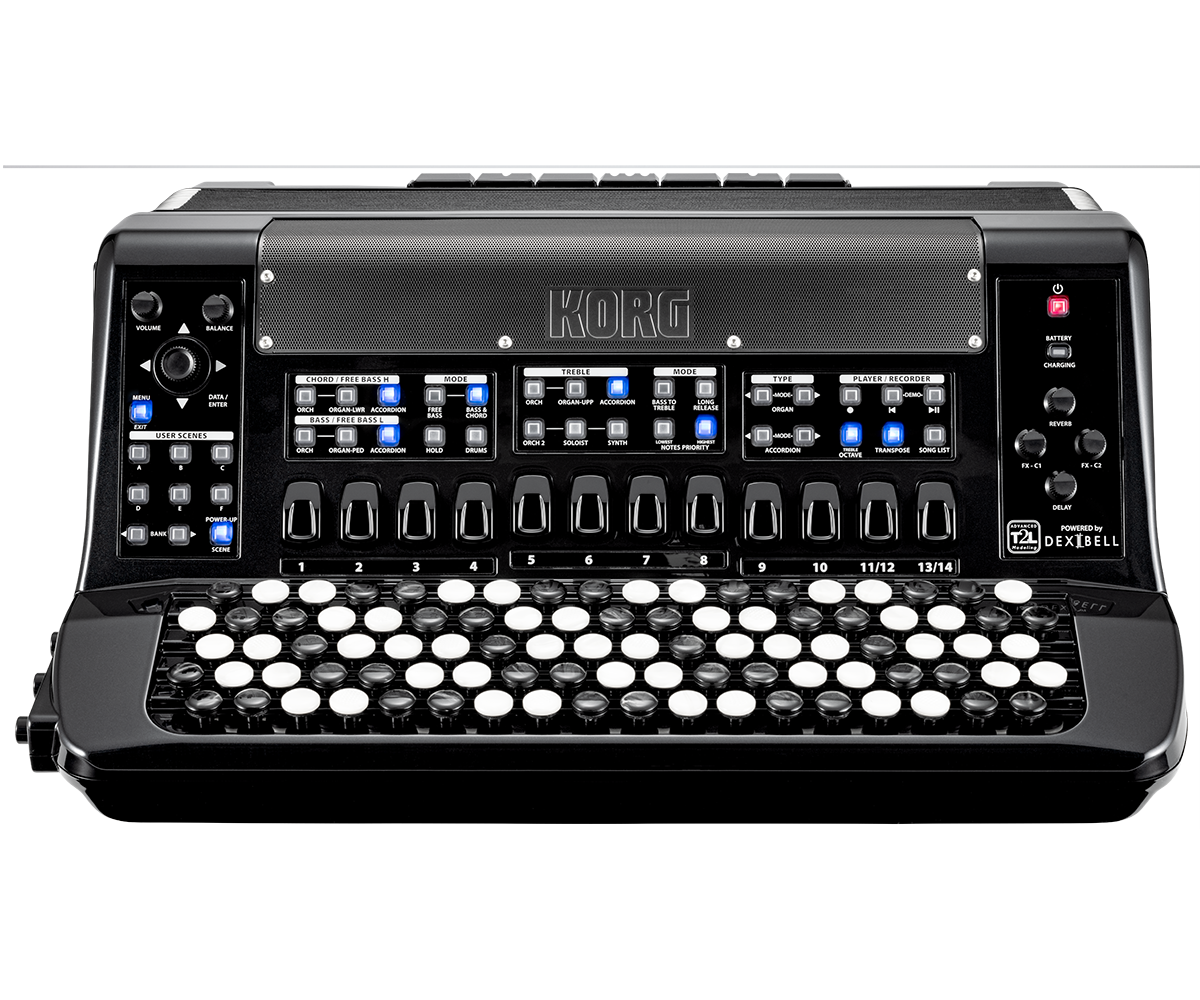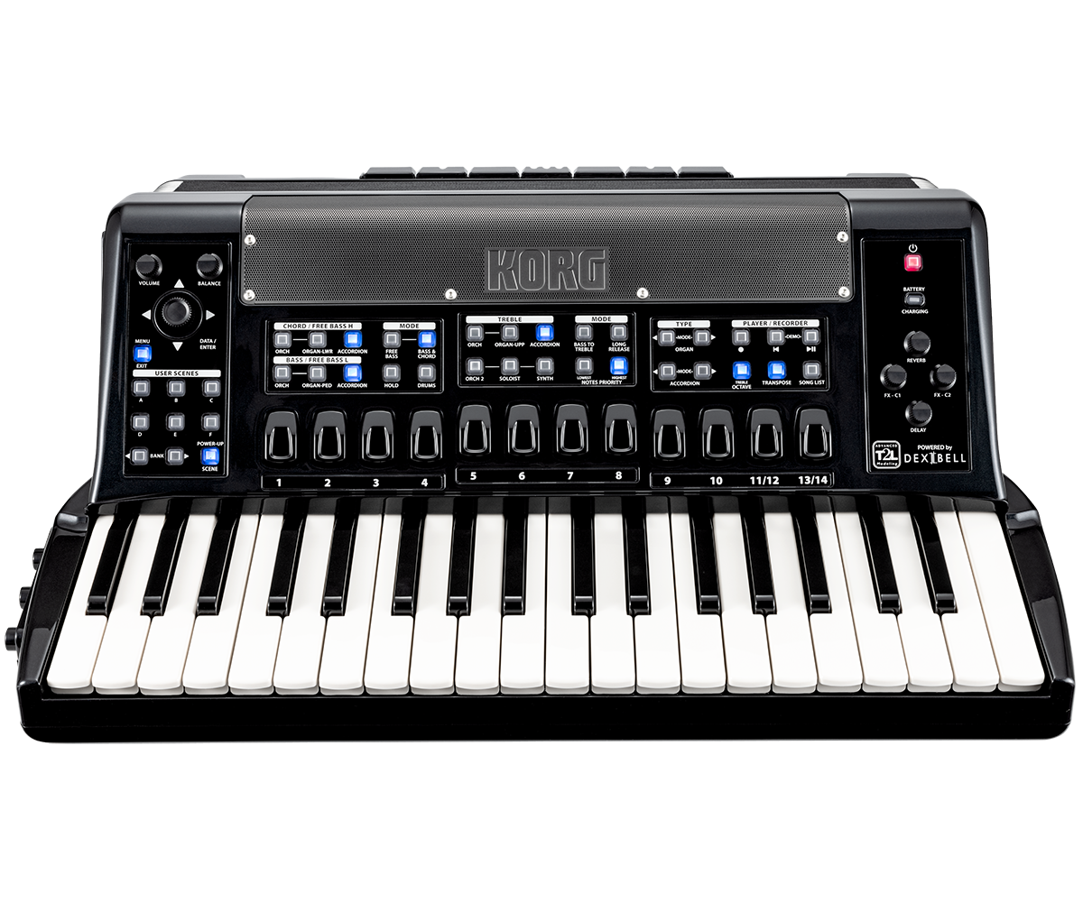 その軽量化を支えるのが、扱いやすさを追求した機能の最適化です。スピーカーを一回り小型化し、鍵盤はフルサイズ・モデルの41鍵から37鍵へコンパクト化(ボタンモデルは92ボタンを維持)。トレブル・レジスター・ボタンも14個から12個に再構成しつつ、内部構造の工夫により、操作できるレジスターは変わらず14種類をキープしています。マスターバーやアフタータッチといった一部の機能を省略することで、よりシンプルで直感的なインターフェースを実現しました。