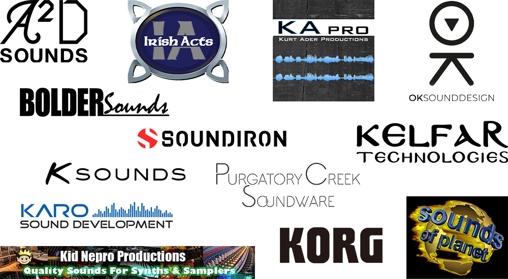 KORG, KARO, Kid Nepro, Irish Acts, Kelfar Technologies, K-Sounds, KApro, Bolder Sounds, Purgatory Creek Soundware, Sounds Of Planet, Soundiron, A2D Sounds, OK Sound Design: