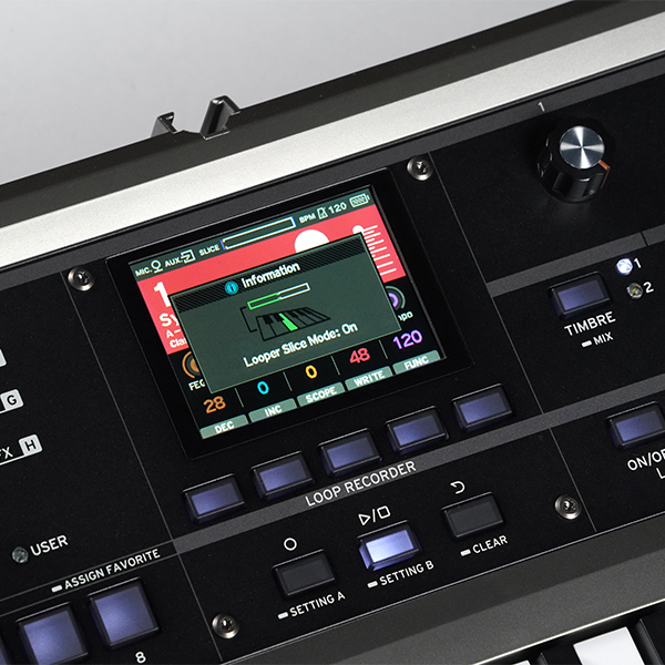 In Slice mode, recorded loop sounds are divided and assigned to the keyboard, allowing you to play them as individual slices. This ensures you can reliably select the exact portion of the recorded sound you want to loop, and by combining it with the arpeggiator, you can further expand and develop your loop sounds.