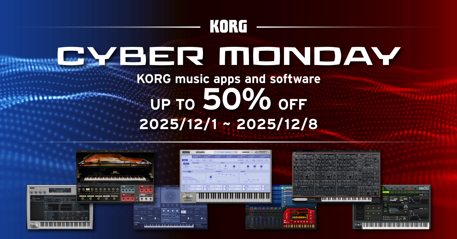 This year’s CYBER MONDAY sale offers up to 50% OFF all KORG music production apps and software - but for a limited time only! KORG Collection 6, KORG Gadget 3, native series, iOS/Android apps and in-app items are all included. But hurry - sale ends this December 8th.