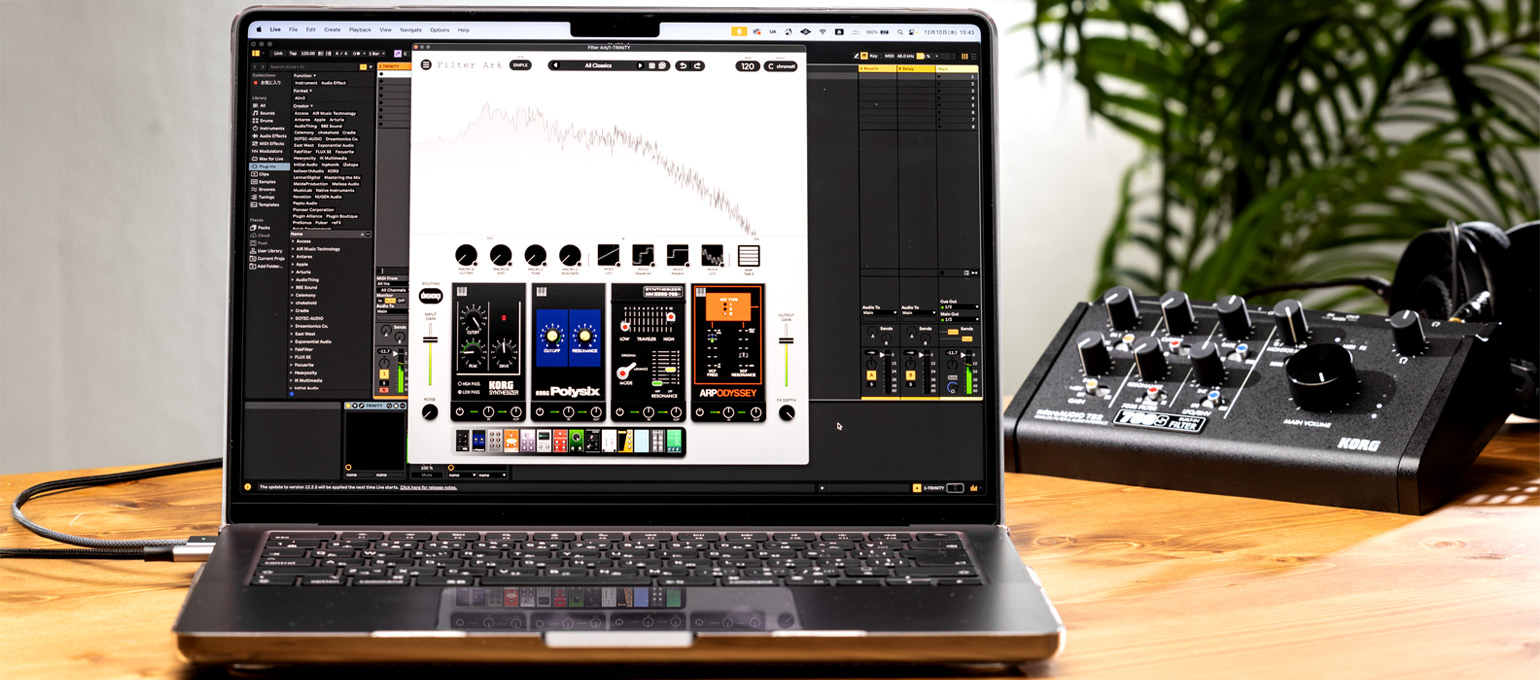 Filter Ark is included in KORG Collection 6. With 21 KORG and ARP instruments and effects, the KORG Collection brings together an extensive range of classic analogue and digital synths, groove and DJ tools, and essential acoustic and electric keyboard instruments, all faithfully recreated for modern music production.