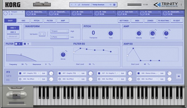 KORG Collection TRITON comes with the characteristic vast number of parameters to meets your most specific needs. For when that level of control is a bit too much, the newly designed EASY mode will allow you to shape your sound on a single page. You can quickly access frequently used parameters like oscillator and effect selections, as well as filters and EQ adjustments, making rough edits of sounds and minor adjustments of presets effortless.
